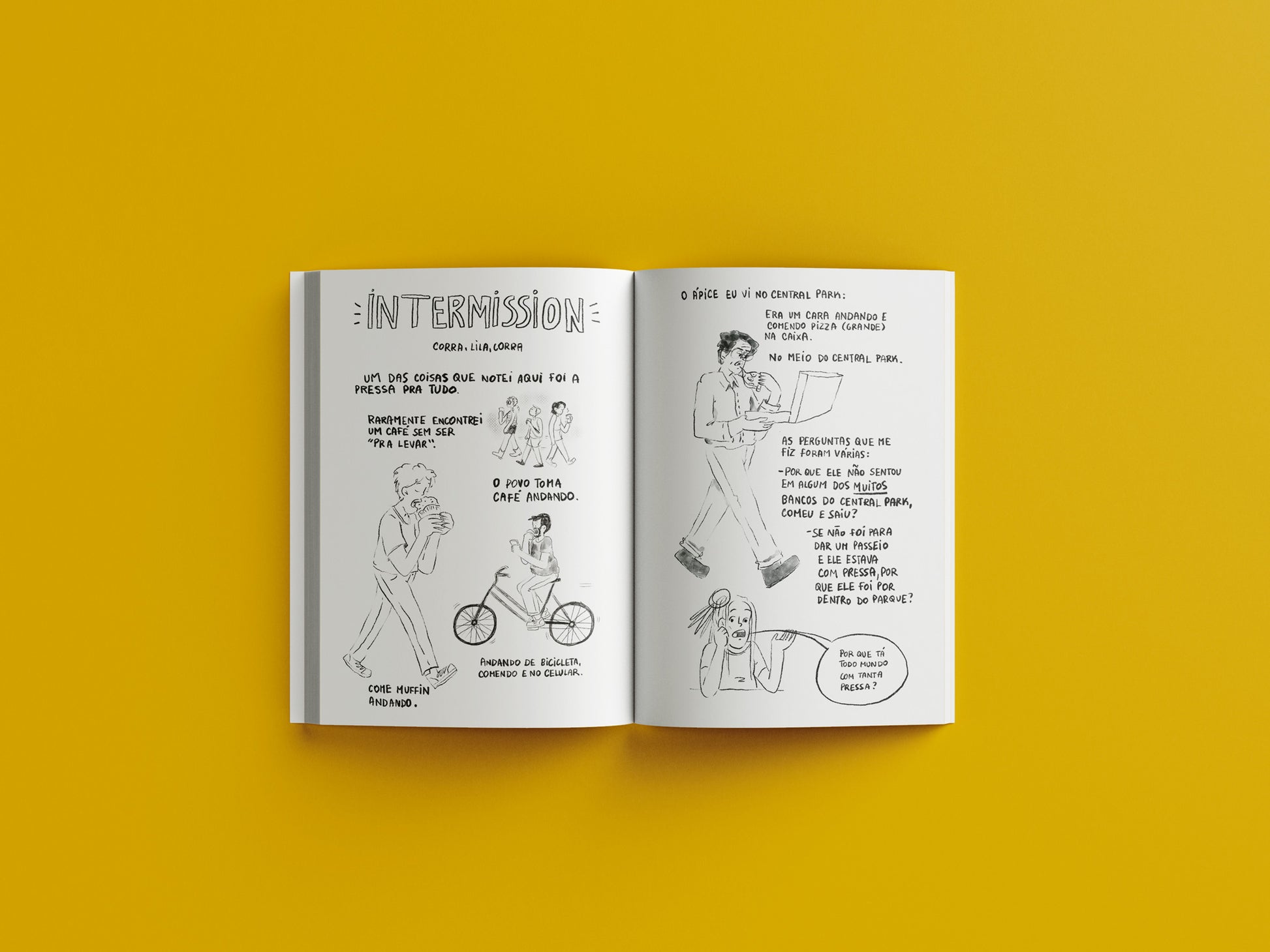 São 108 páginas que contam sobre os dias em Nova Iorque, sobre ser autista e viajar sozinha, sobre a primeira vez numa escola de arte fora do Brasil e também sobre ter pouca grana e todas as loucuras de viajar assim mesmo.